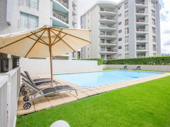 This stunning fully furnished 2 bed 2 bath apartment is in the heart of Sandton