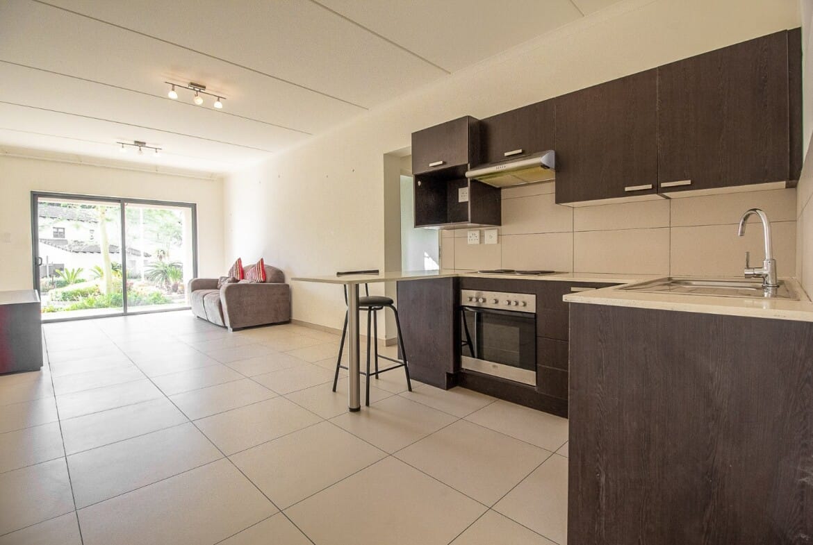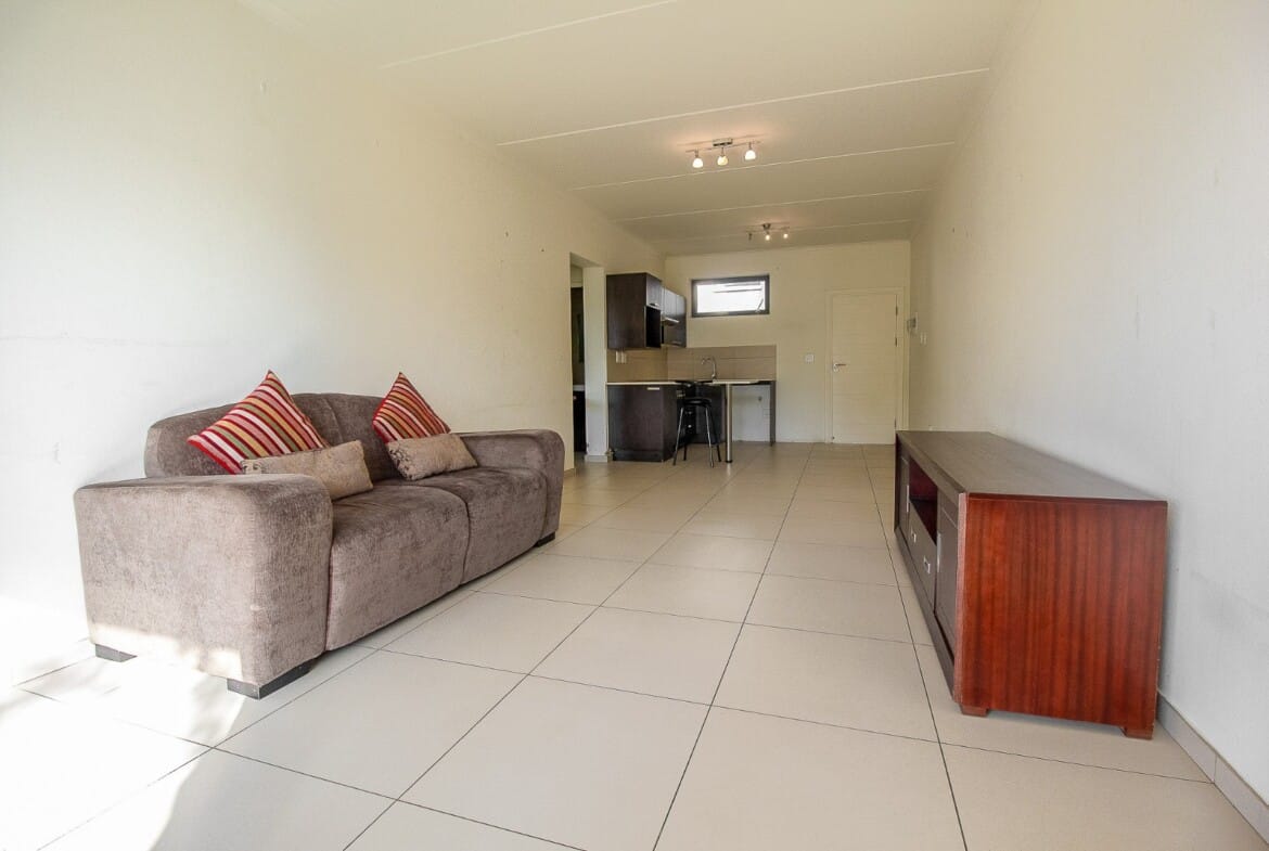 This modern ground-floor apartment is light and sunny and offers an open-plan living room with a DSTV facility and kitchen. The kitchen is fitted with Caesar stone tops and can accommodate 1 counter appliance. This unit has 1 bedroom and 1 full modern bathroom which includes a shower, bathtub, toilet and a basin. The living room leads out to a covered patio. The rental excludes Water, Electricity and Sewer. This unit is ideal for a young professional.