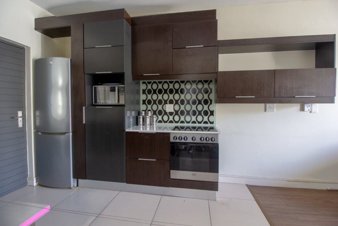 A modern kitchen with ample cupboard space as well as all utensils and appliances, 2 Bedrooms with built-in cupboards, a single bathroom with a toilet, basin and shower/bathtub combination. Open plan dining room and lounge area leading to a patio/ balcony area outside. It is ideal for young professionals or bachelors.