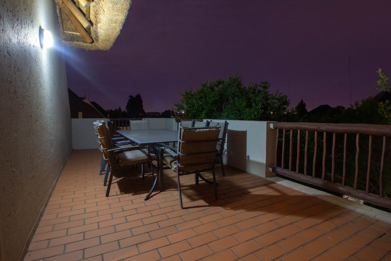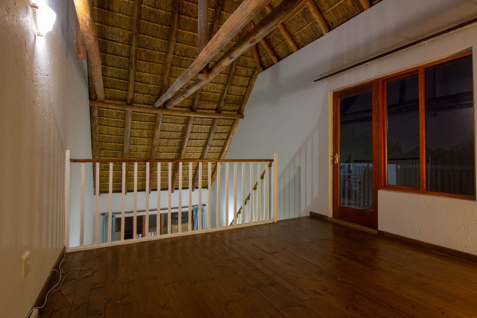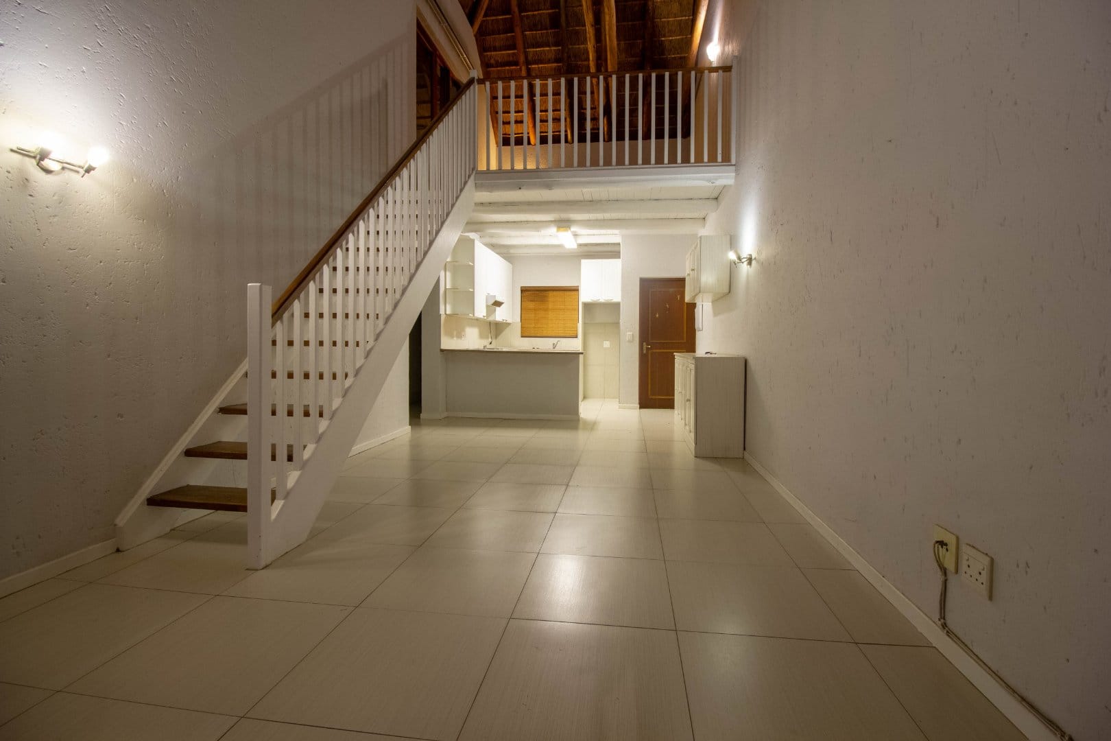 Upstairs boasts an extended loft with a lounge and office/study space. The loft leads onto a large open balcony, perfect for entertaining with a view as far as the eyes can see. This complex offers 24-hour secure access control security, a swimming pool with a thatch lapa plus braai facilities. Call us now!!