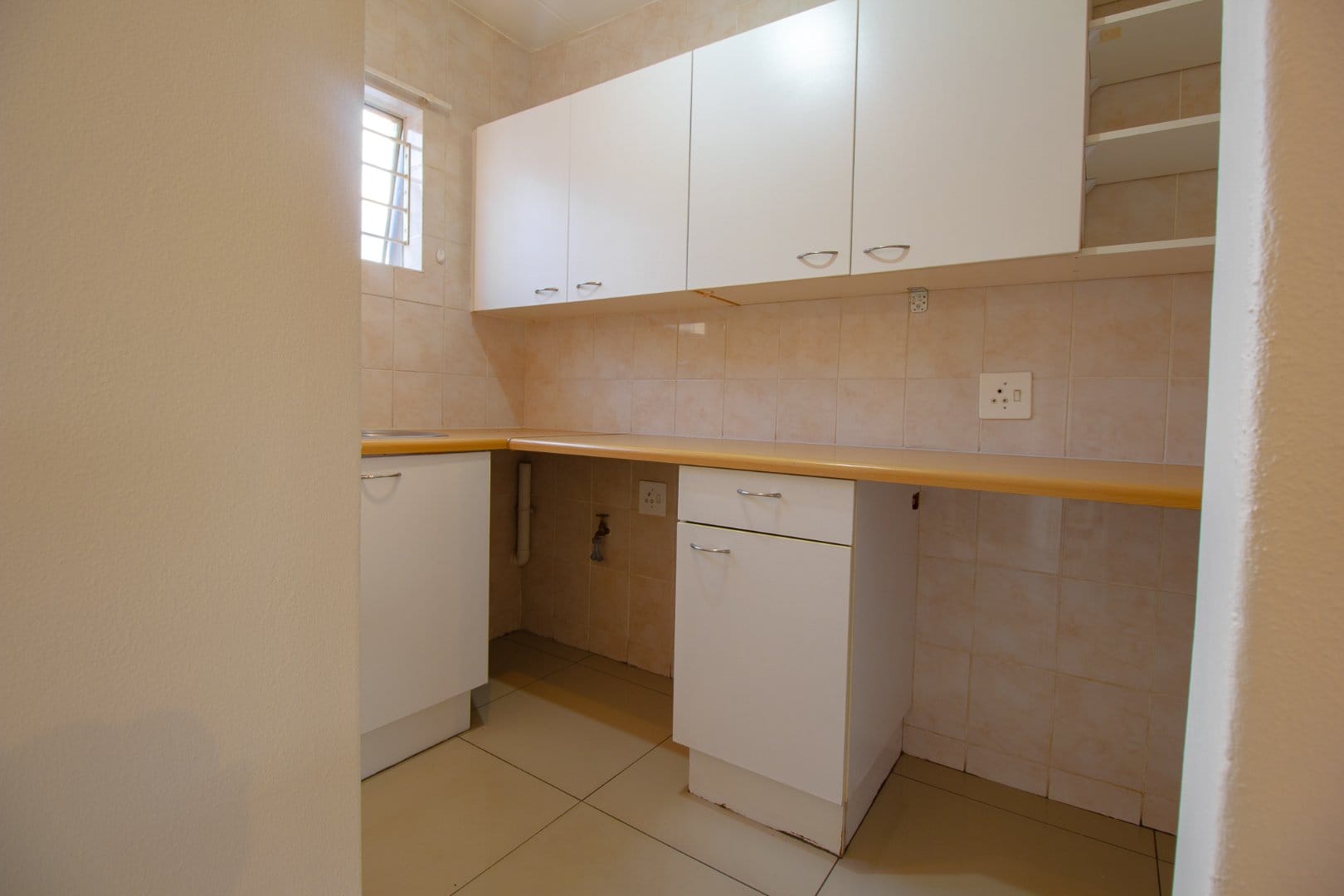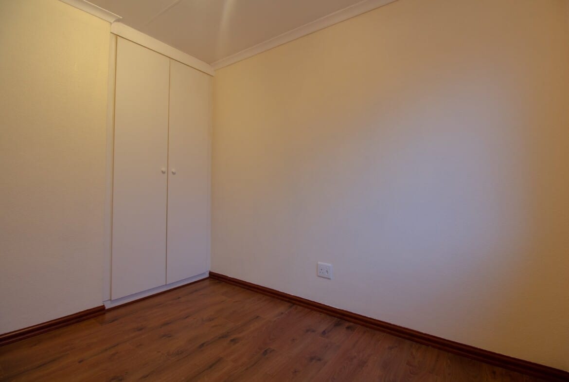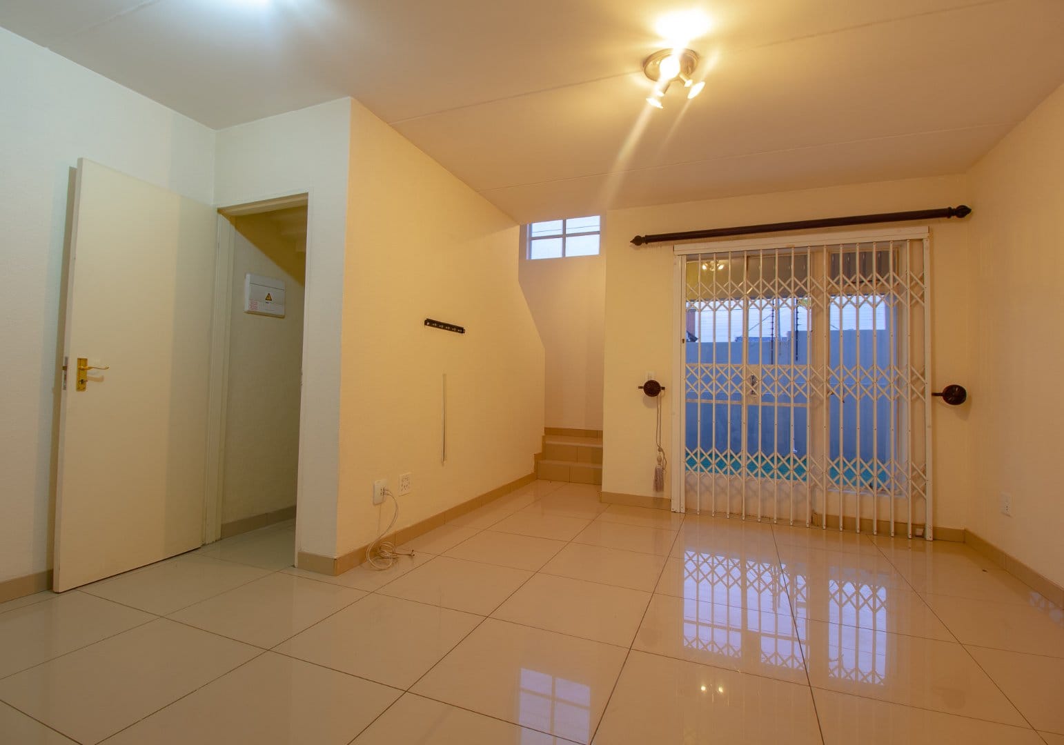 Modern and clean, this double-storey unit is well-maintained, light and bright. A modern kitchen with ample cupboard space as well as all utensils and space for 1 appliance, an open plan dining room area opening to the private garden area, there is also a guest loo and single garage. Upstairs, 2 bedrooms which are a good size and serviced with a full bathroom. It is ideal for the young professional wanting to start a family or a bachelor.