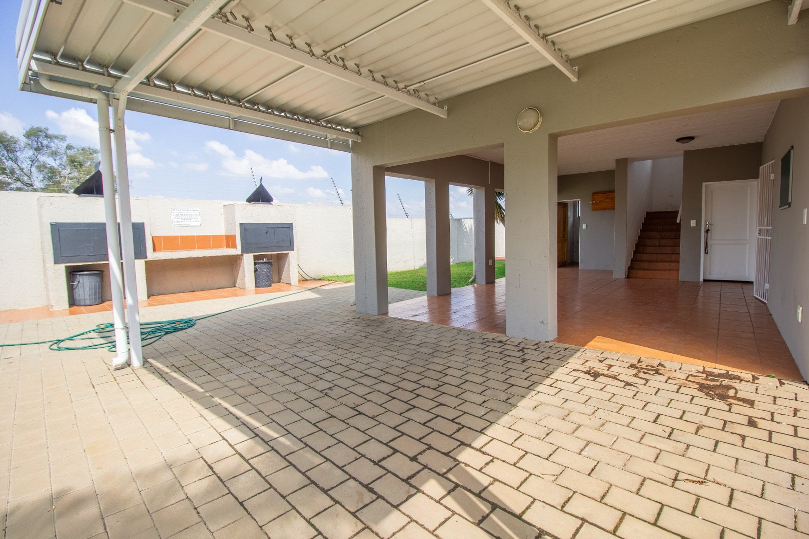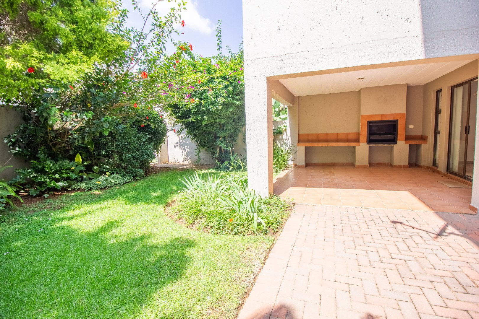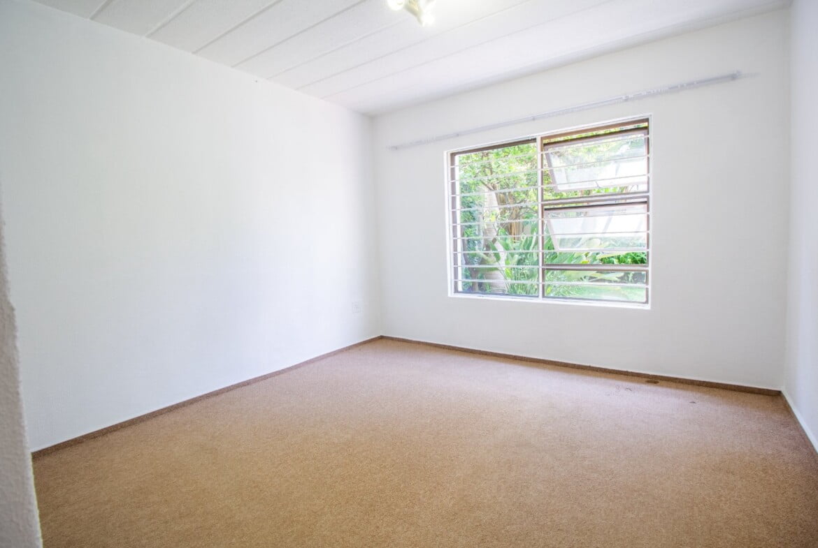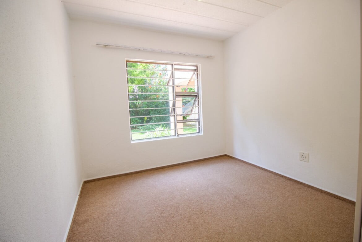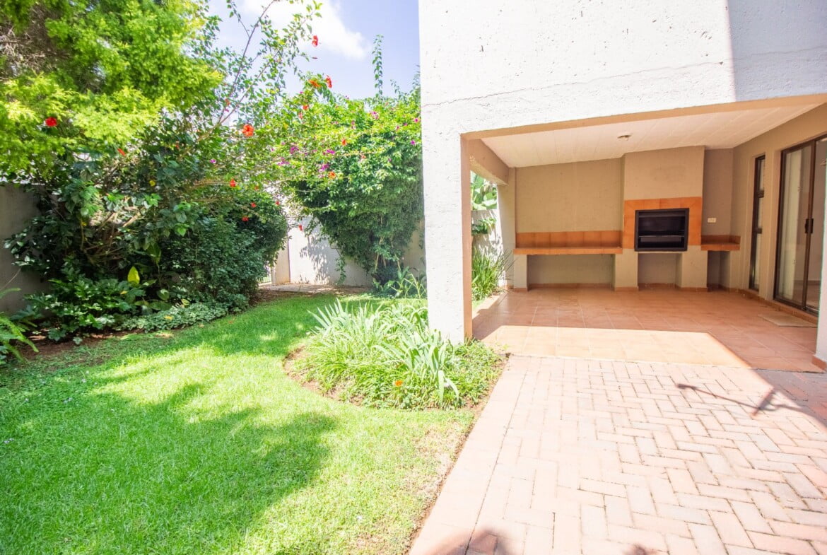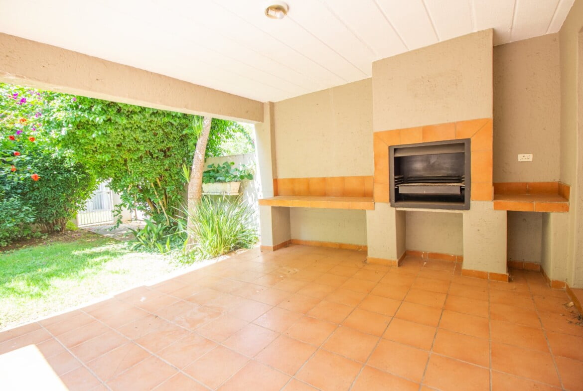 Well-designed kitchen with gorgeous granite countertop finishes an open plan tiled lounge and a dining room that leads onto a private garden/patio. The garden/patio includes a built-in braai, which would give you an amazing opportunity to host family and friends. En-suite with a walk-in closet and a full bathroom. This apartment is suitable for a couple looking to start a family or a young professional looking to stay alone.