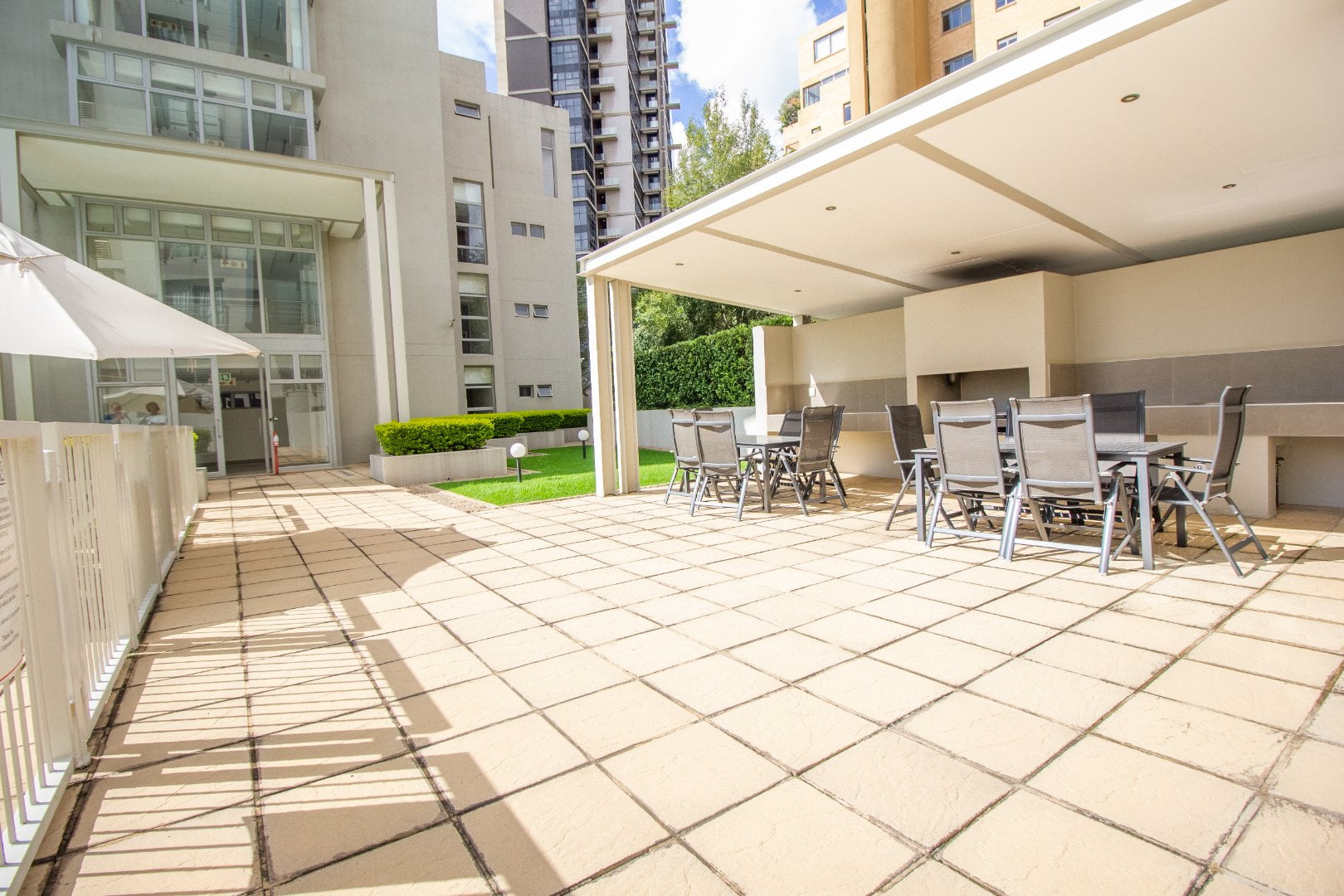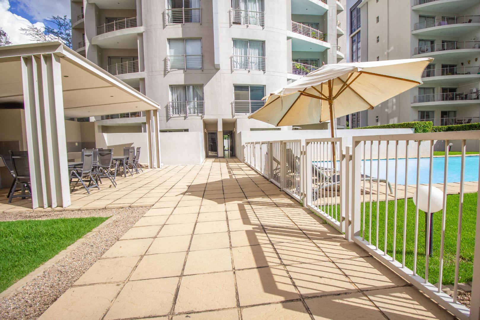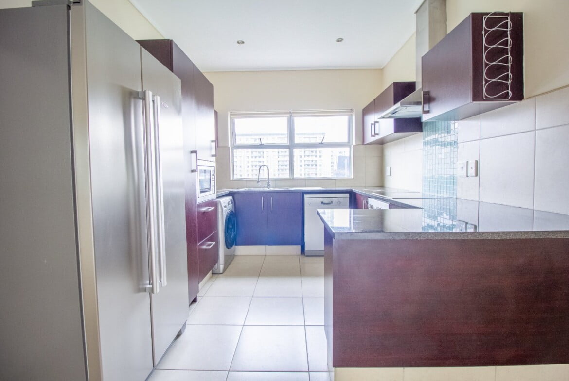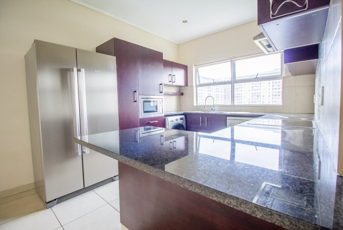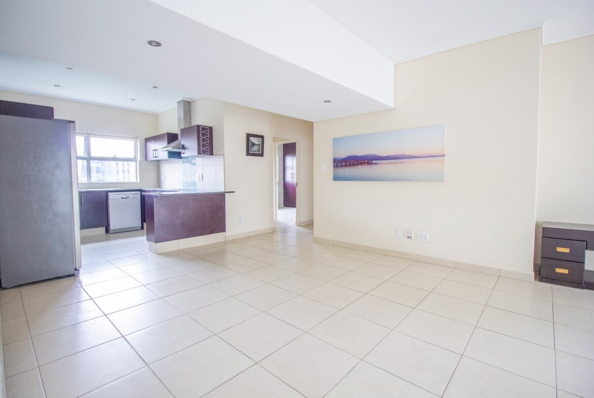 This immaculate 2 bed 2 bath lifestyle apartment, situated in a well-maintained and secure complex, is ideally located in the heart of the Sandton business hub. It has modern kitchen finishes with built-in cupboards and a spacious dining area that overflows into the living room, with floor-to-ceiling screened doors leading out onto the balcony.