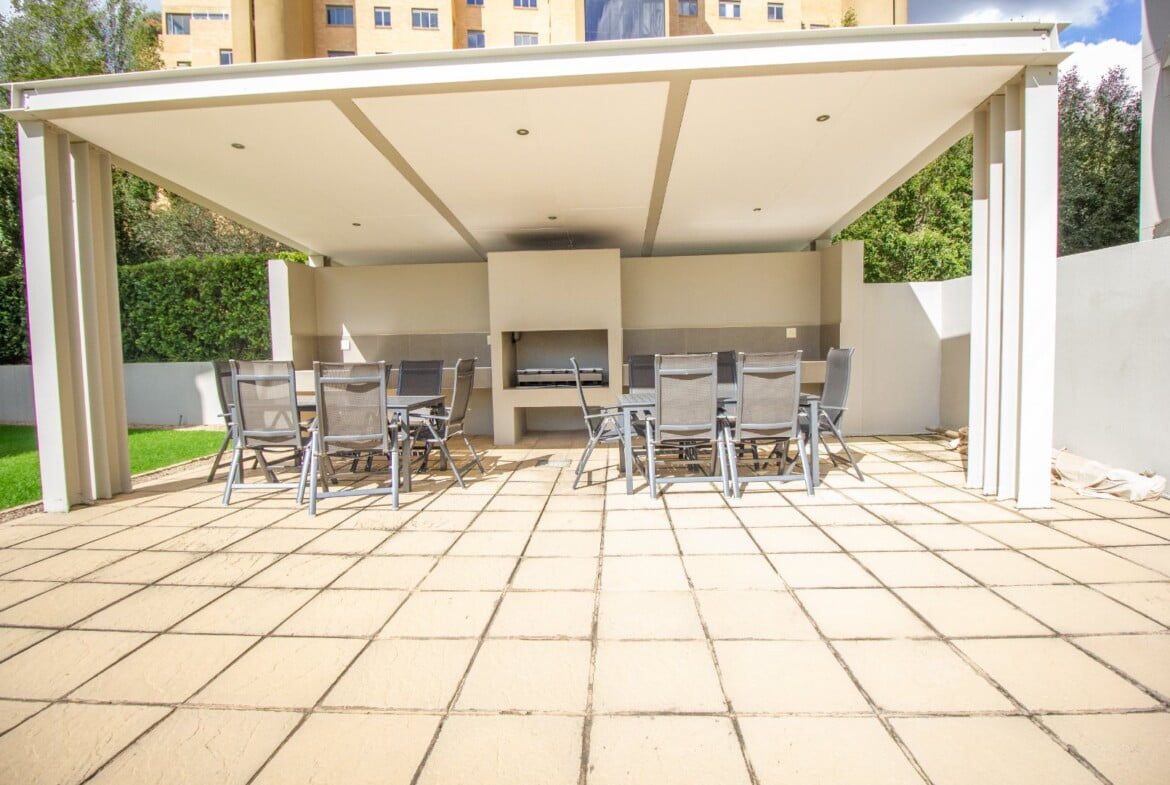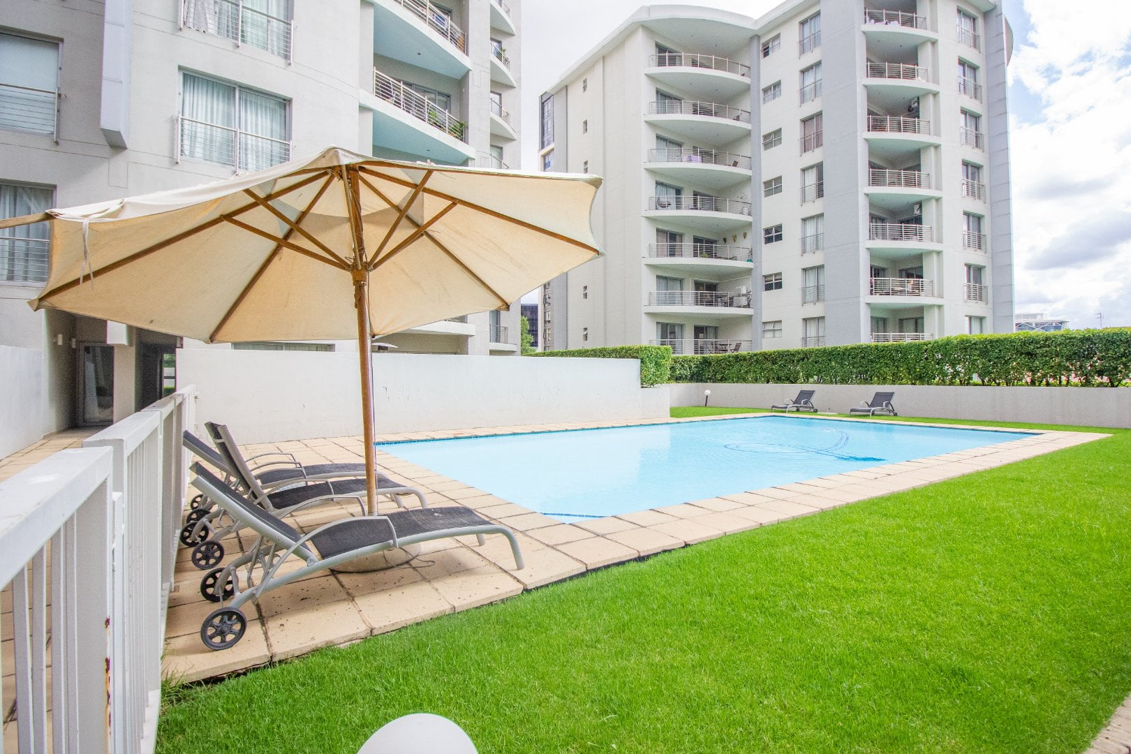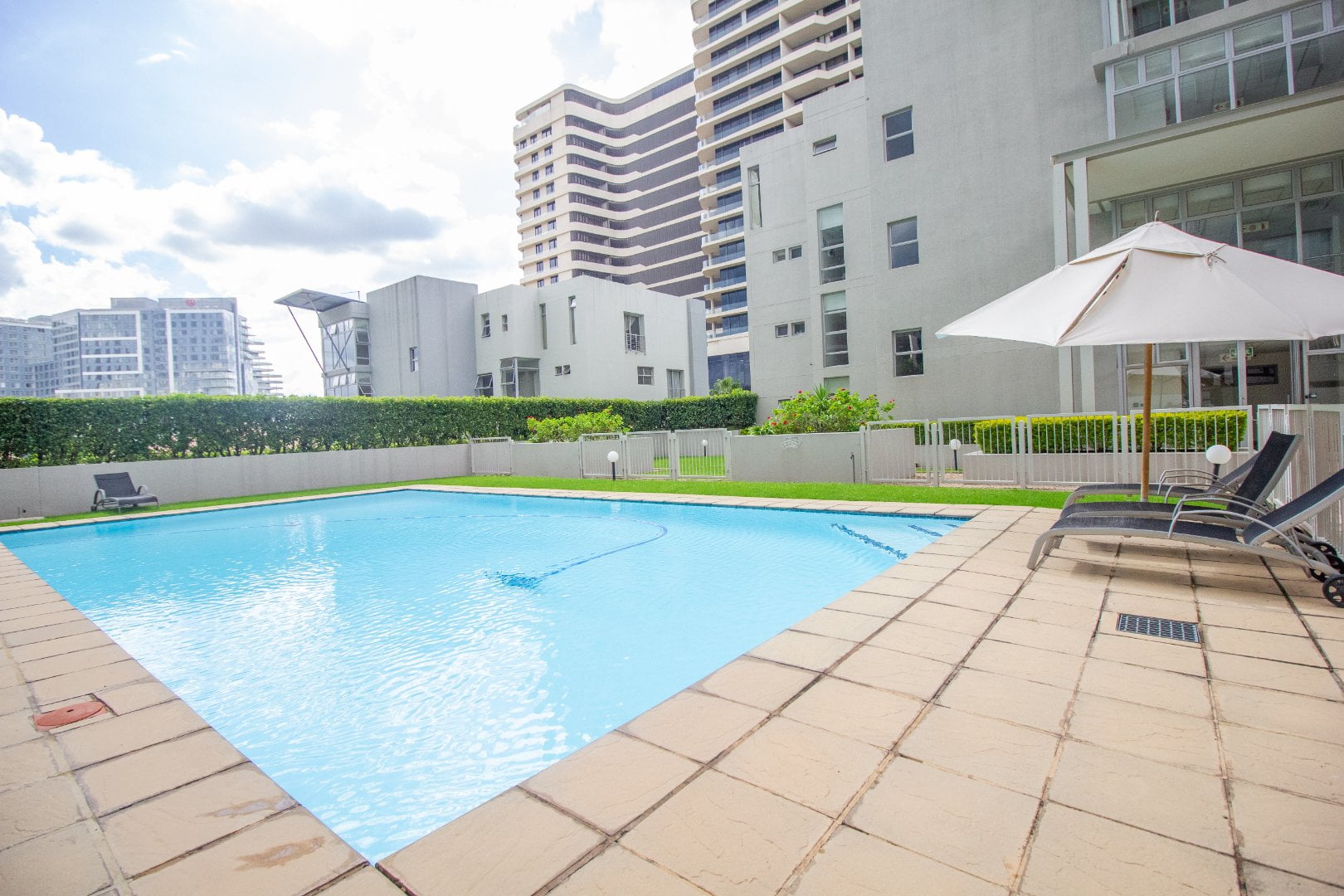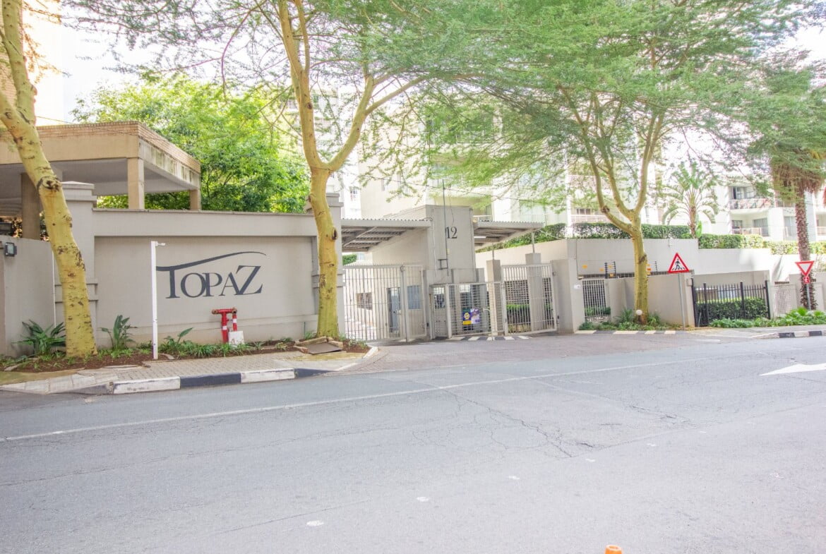 The complex includes 24hr security, tranquil gardens, a clubhouse with braai facilities and a swimming pool (with the most gorgeous view). Topaz Apartments is a stone’s throw away from Sandton City, a short distance from the Sandton Gautrain station, Rivonia Road and a bevvy of major corporate buildings like the Norton Rose, American Embassy, ABSA Capital, Sanlam etc. The unit comes with pre-paid electricity and excludes water, Wi-Fi, DSTV & domestic – all of these can be arranged as required. Call us now!!