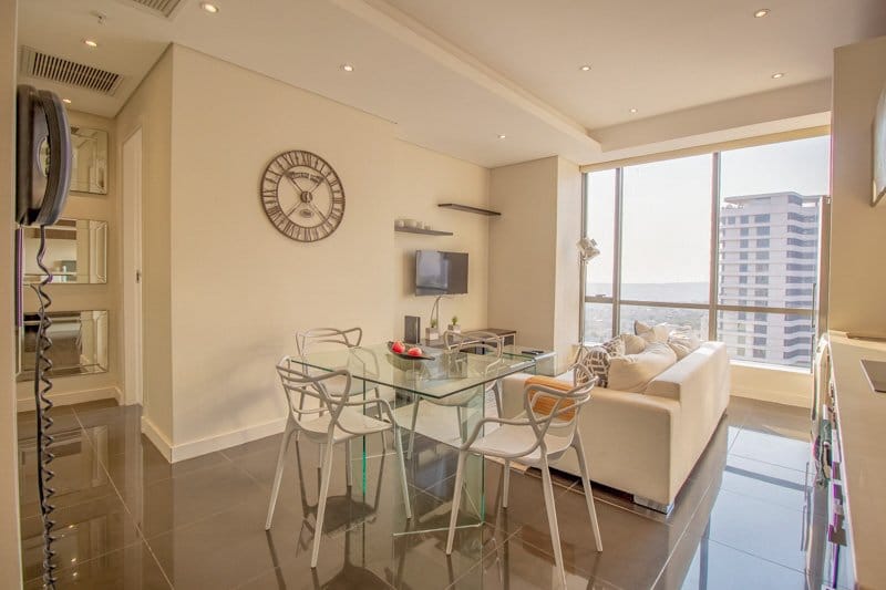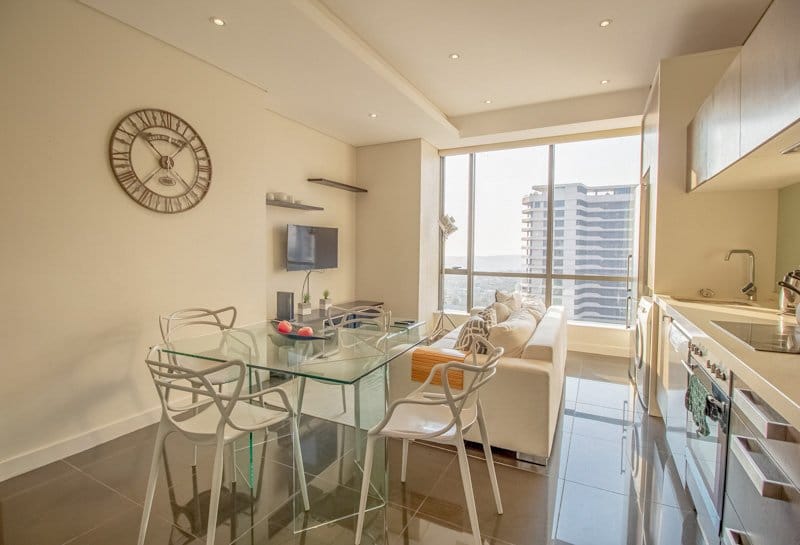 Presenting this sophisticated 2 bedroom suite that has spectacular views of the central Sandton skyline. Impressive design with luxury finishes and natural light that brightens up the entire apartment. With a beautifully equipped open-plan kitchen and a lovely living room with windows overlooking Sandton City. Spacious bedroom, full en-suite bathroom and a lot of cupboard space. The first bedroom comes with a king-sized bed, accompanied by an en-suite full bathroom equipped with a shower, bathtub, basin and toilet. The 2nd bedroom is also spacious and is en-suite, equipped with a shower, basin and toilet.